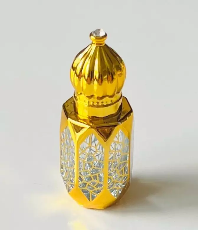 - Upgrade your fragrance routine with our 6ml empty refillable perfume bottle. This gold glass rollerball attar bottle combines charm and practicality, becoming an essential part of your daily rituals. From its beautifully crafted design to the captivating lid adorned with rhinestones, this bottle is a touch of luxury you’ll love.